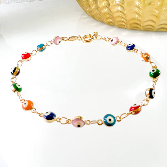 18K Gold Filled Multicolored Evil Eye Bracelet