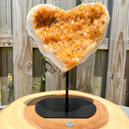 12.8 lbs - Beautiful Large Druzy Heated Citrine Heart on a stand - #14