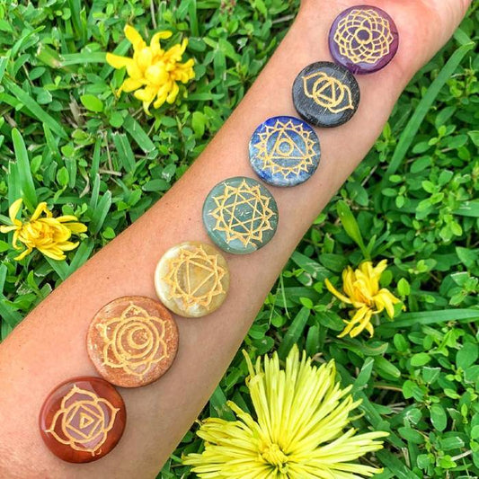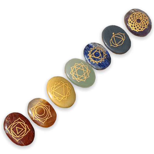 7 Chakra Gemstone Engrave Stone Palm Stone Set
