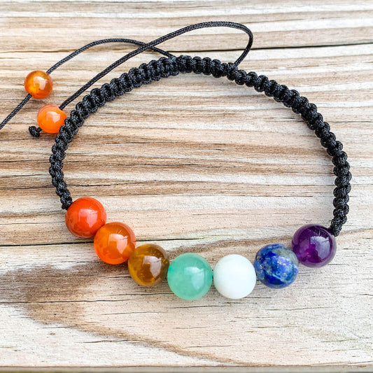7 Chakra Gemstone Adjustable Handmade Woven Cord Bracelet