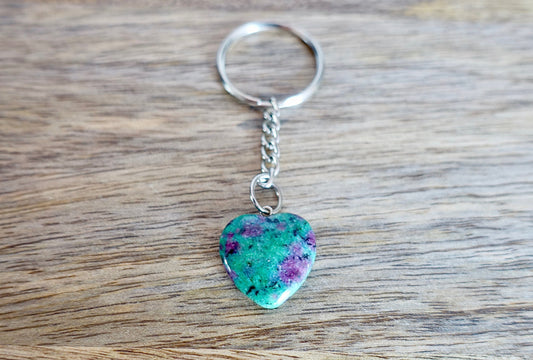 Zoisite Stone Handmade Heart Keychain