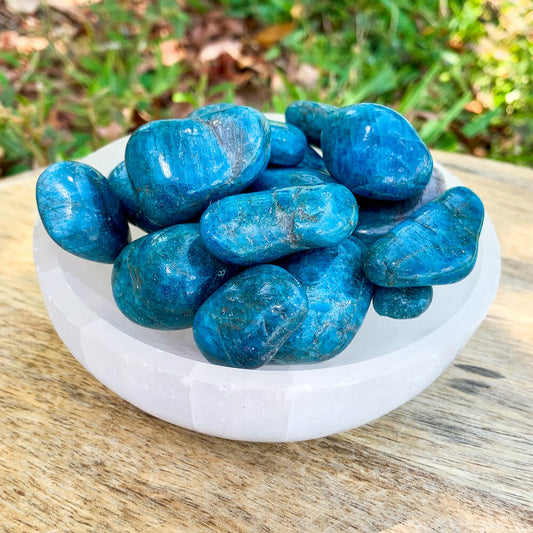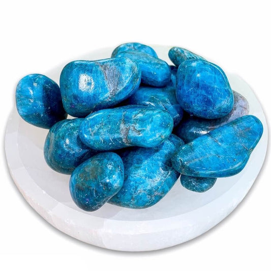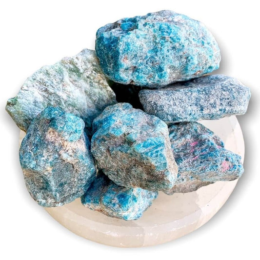 Apatite is a stone of manifestation. It is used for service and humanitarian pursuits. Apatite is attuned to the future, yet connects to past lives. It stimulates the development of our psychic gifts and spiritual attunement, deepening meditation and aiding communication and self-expression on all levels. It balances the physical, emotional, mental and spiritual bodies, and the chakras, eliminating overactivity and stimulating under-activity.