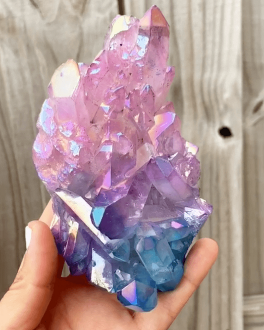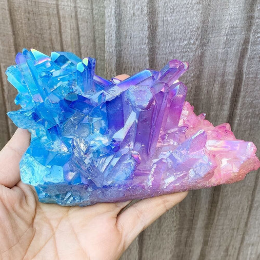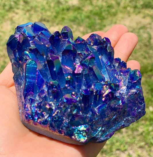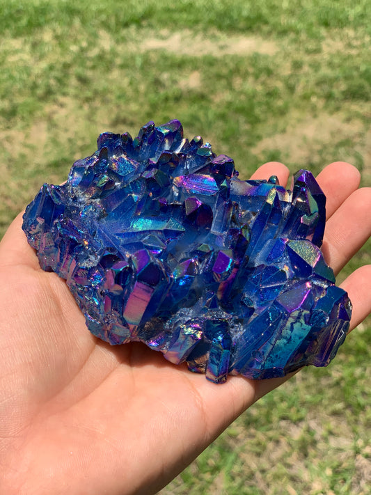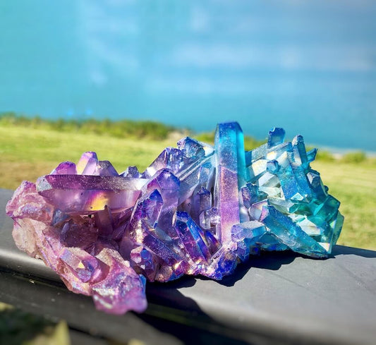 Blue Aqua Aura & Purple Aura Quartz Cluster - 374 grams
