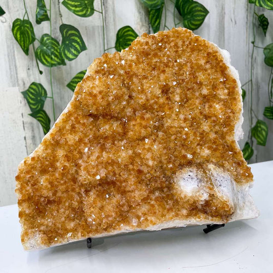 12.8 lbs - Beautiful Large Druzy Heated Citrine Heart on a stand - #14