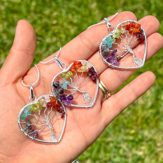 Tree of Life 7 Chakra Wire Heart Pendant Necklace