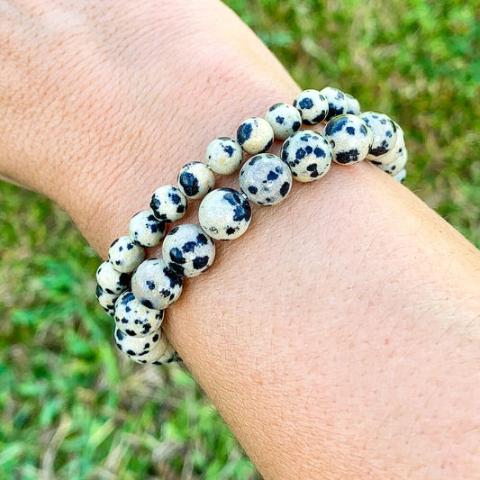 Dalmatian Jasper Stone Elastic Beaded Bracelet