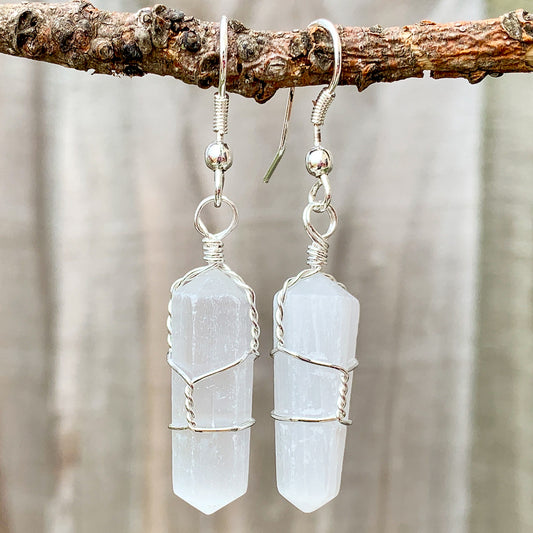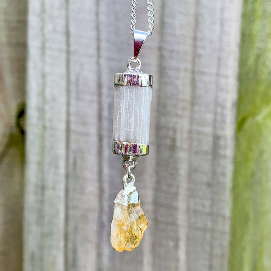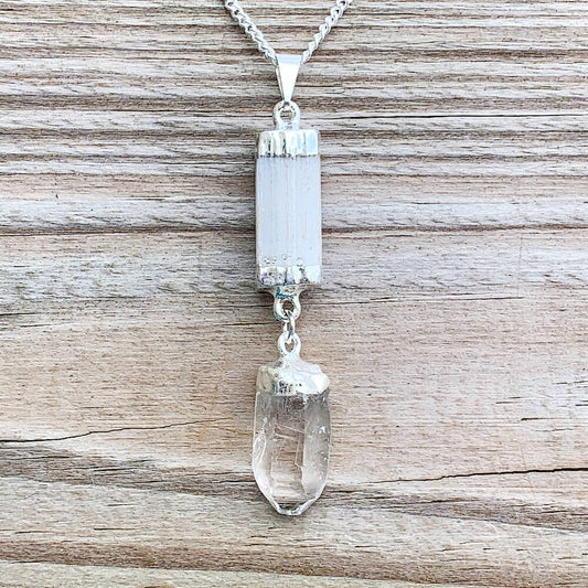 Selenite and Clear Quartz Cluster Pendant Necklace