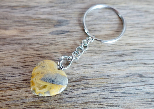 Crazy Lace Agate Gemstone Heart Keychain