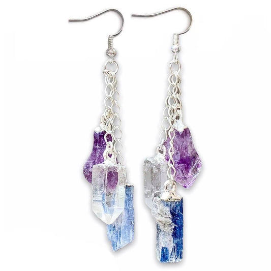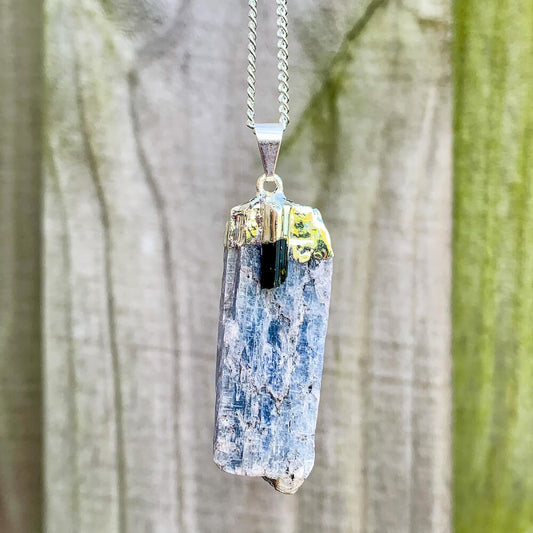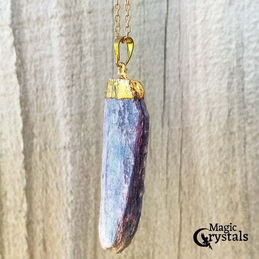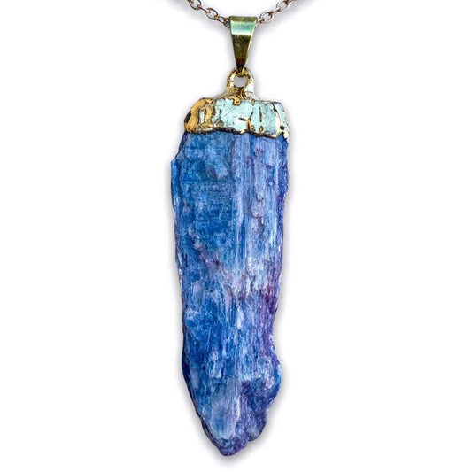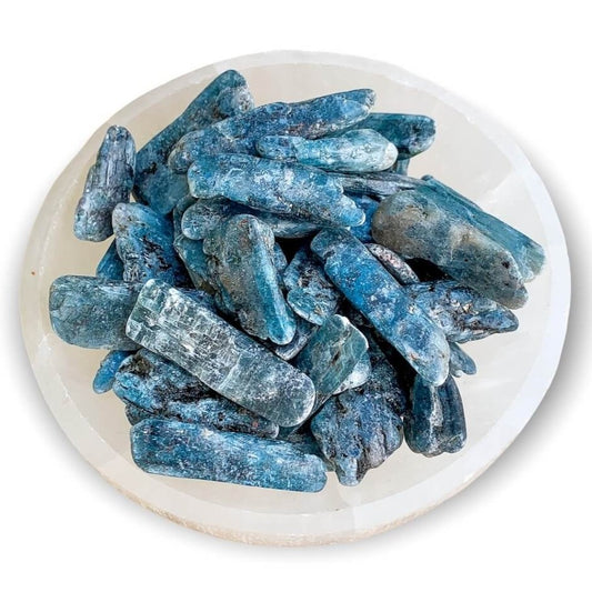 Blue Kyanite is an aluminum silicate mineral with an unusual hardness quality. Blue Kyanite opens the throat chakra, encouraging communication and self-expression.  It cuts through fears and blockages, helping to speak one’s truth.  It is very useful for public speakers and performers as it strengthens the voice and heals the throat and the larynx. Blue kyanites have a high vibration and create very rapid transfers of energy. They open the psychic channels and activate the mind centers, accentuating one's mental capacities and enhancing one's ability to "download" information from higher sources.