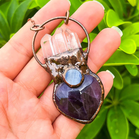 Natural Quartz Handcrafted Bronze Necklace