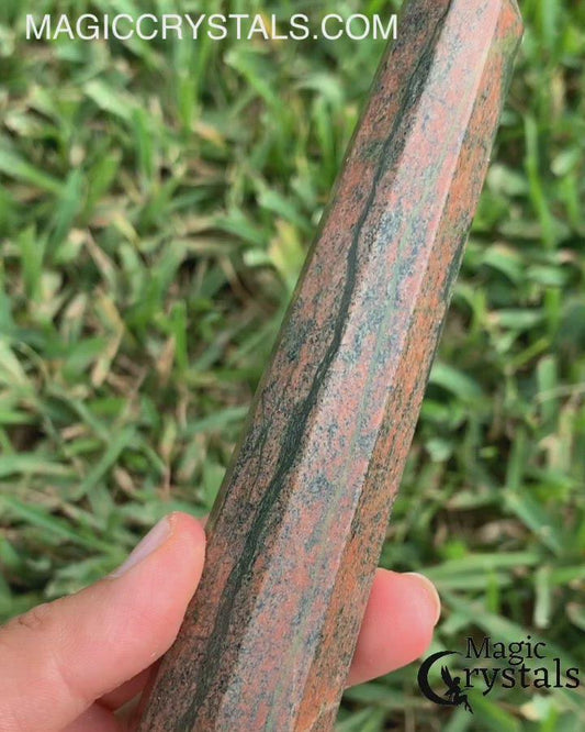 Check out our gemstone obelisk selection at Magic Crystals. Our gemstone towers, wands, and obelisks are stunning with stones like lepidolite, lapis lazuli, selenite, red jasper, clear quartz, sunstone, golden healer quartz, unakite, Vesuvianite and more.