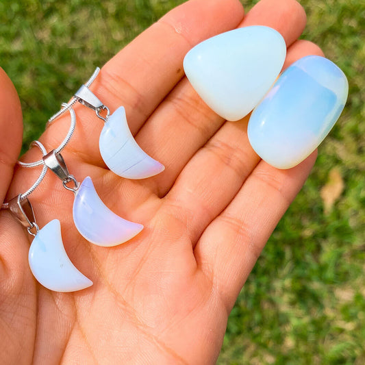 Pale Blue gemstones include: blue lace agate, blue onyx, opalite, opal, angelite, turquoise, and more.