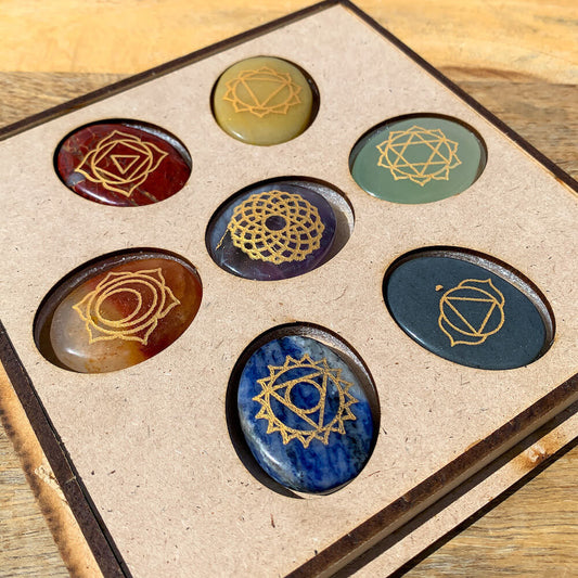 7 Chakra Gemstone Engrave Stone Palm Stone Set