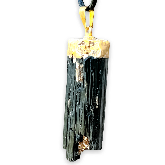 Rough Black Tourmaline Gold Plated Pendant Necklace
