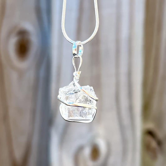 Clear Quartz Crystal Cube Spiral Wrapped Pendant Necklace