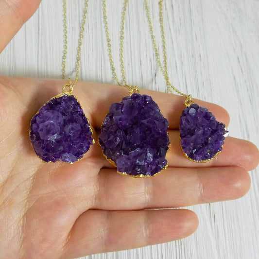 Raw Amethyst Stone Necklace 18k Gold Plated