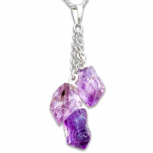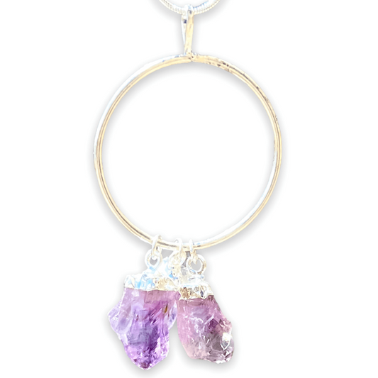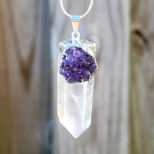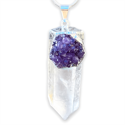 Amethyst and Clear Quartz Single Point Pendant Necklace