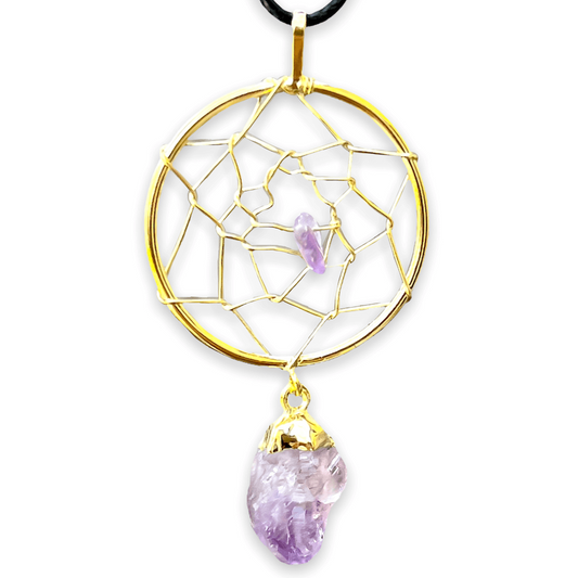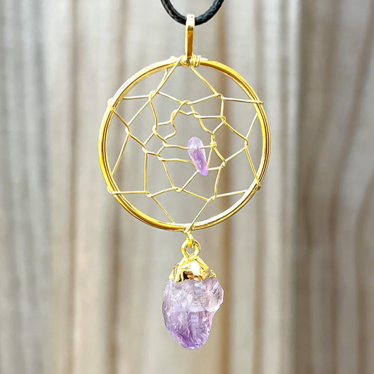 Amethyst Dreamcatcher Gold Plated Necklace - Dream Catcher Necklace
