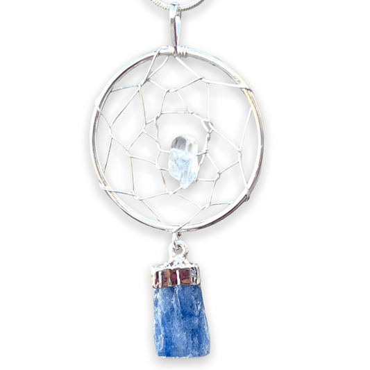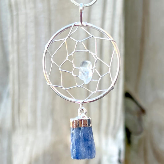 Blue Kyanite Dreamcatcher Silver Necklace - Dream Catcher Necklace