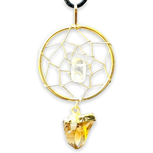 Citrine Dreamcatcher Gold Plated Necklace - Dream Catcher Necklace