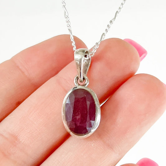 Faceted Sapphire Sterling Silver Pendant Necklace
