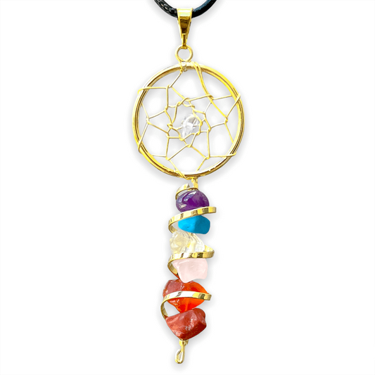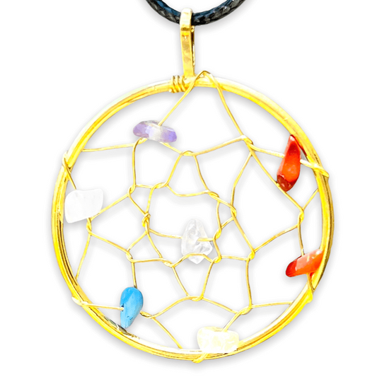 Seven Chakra Dream Catcher Gold Plated Necklace