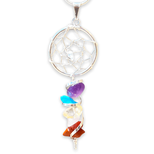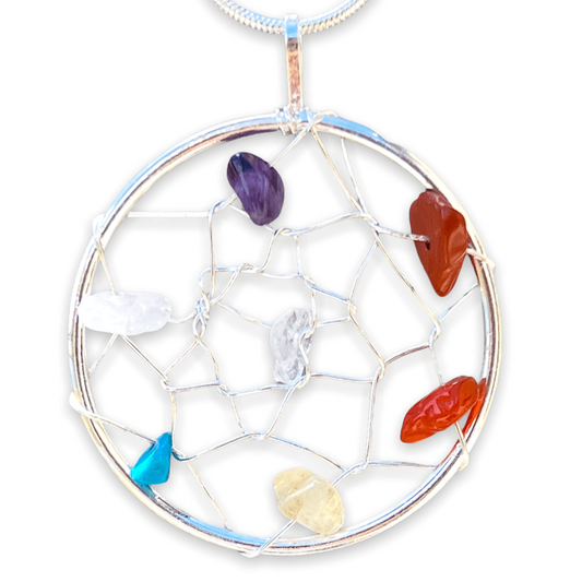 Seven Chakra Infinity Dream Catcher Silver Necklace