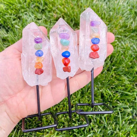 Clear Quartz 7 Chakra Point on Stand