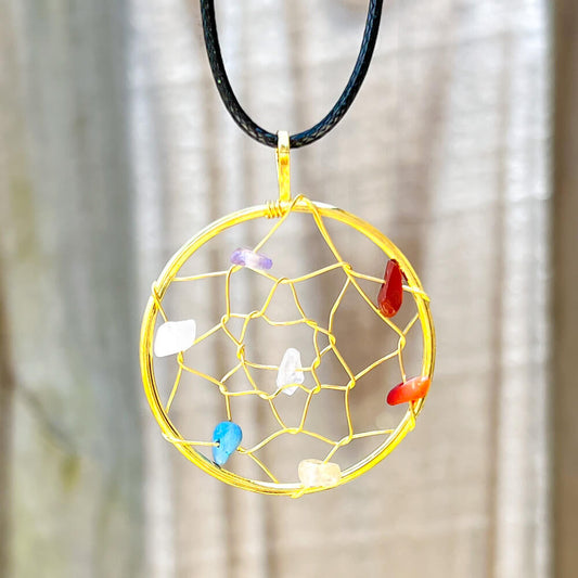 Seven Chakra Dream Catcher Gold Plated Necklace