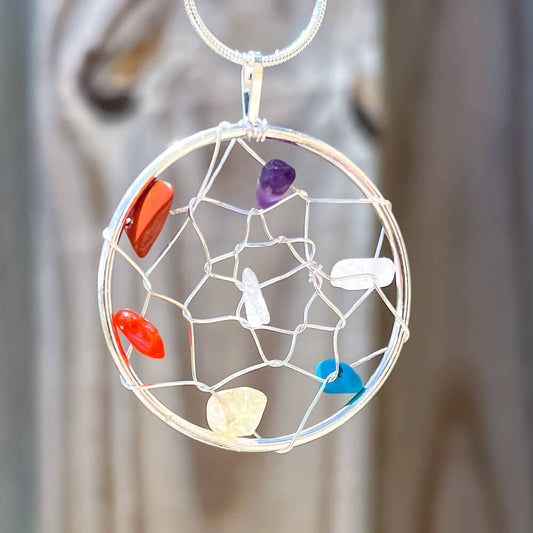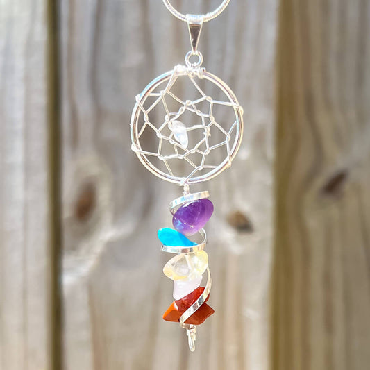 Seven Chakra Dream Catcher Silver Necklace