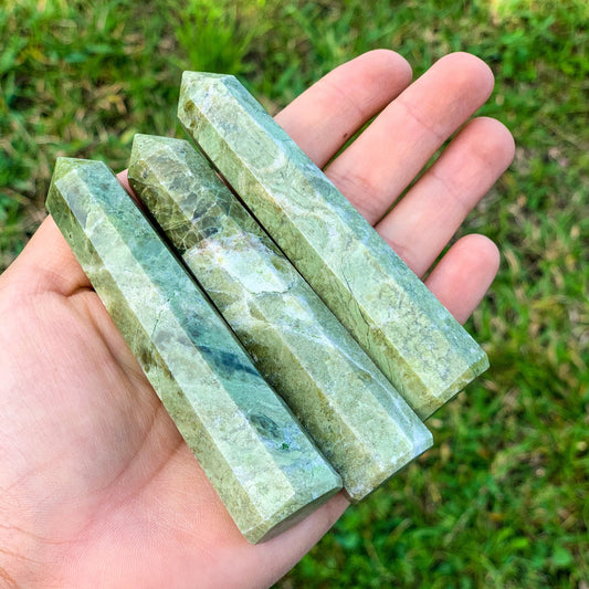 Vesuvianite, “The Stone of Support”; its used to help release pent up anger in a gentle way that helps an individual find balance in their emotions. Vesuvianite helps to connect the Heart Chakra with the spiritual realms, accessing the higher self and its connection to Source, which is love. Vesuvianite offers a direct link to the higher-self to acquire the information one needs to understand their soul purpose during this incarnation.