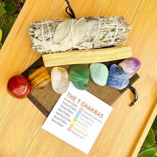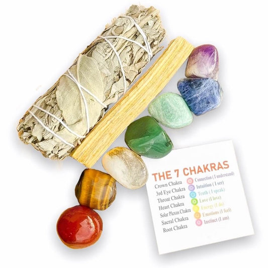 Kit de paquete de 7 piedras de chakra + punto de ojo de tigre
