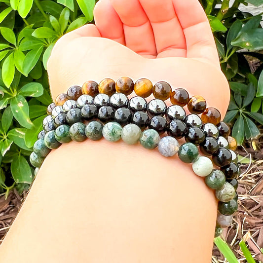 Pulsera Ajustable de Ojo de Tigre Azul Natural, Hematites y Obsidiana Negra