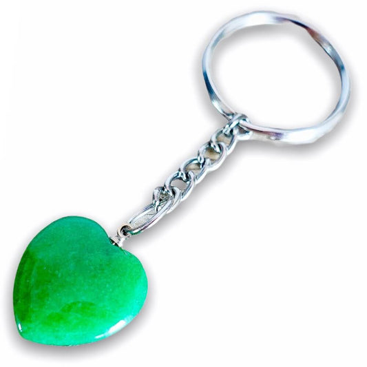 Llavero de corazón hecho a mano con piedra de jaspe verde