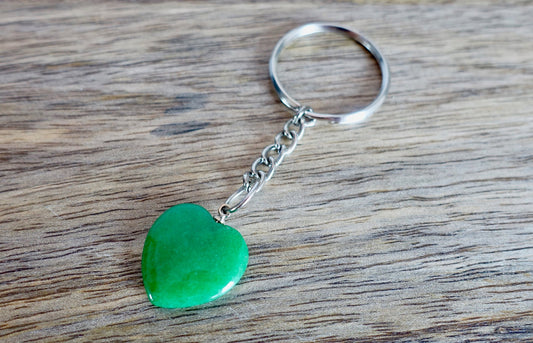 Llavero de corazón hecho a mano con piedra de jaspe verde
