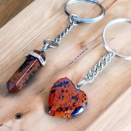 Llavero de corazón hecho a mano con piedra de obsidiana de caoba