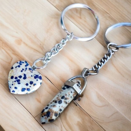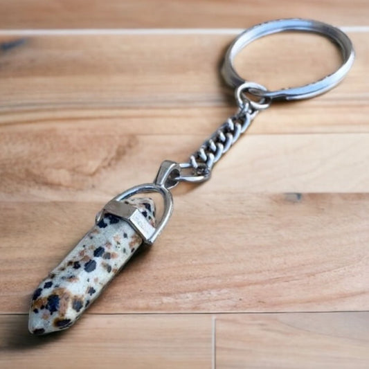 Llavero de doble punta con piedra de jaspe dálmata