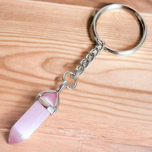 Llavero Doble Punta Piedra Ojo de Gato Rosa