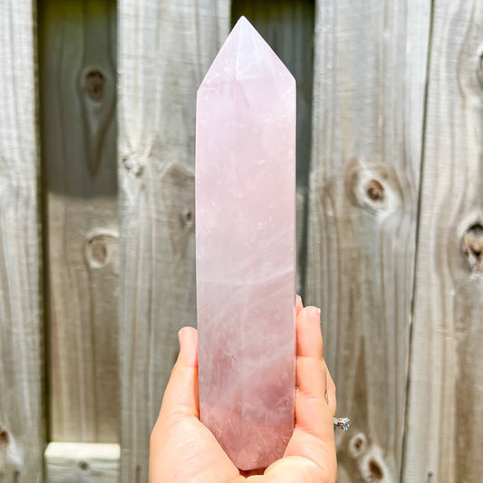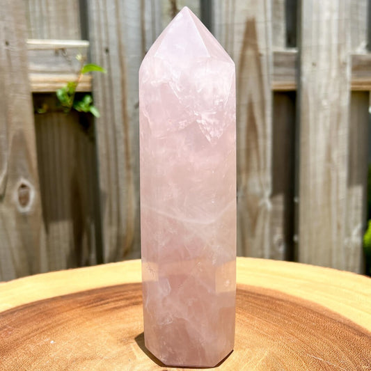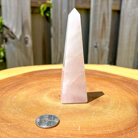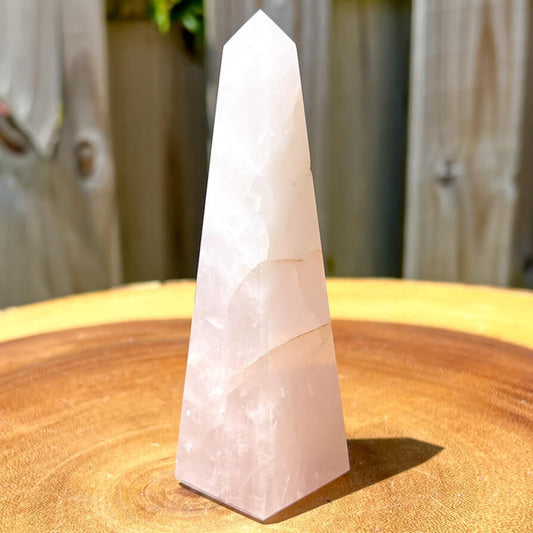 1 lbs 9.3 oz - Obelisco de piedra de cuarzo rosa natural grande