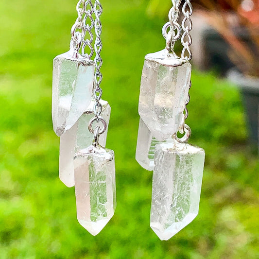 Pendientes colgantes de cuarzo transparente, amatista y cianita