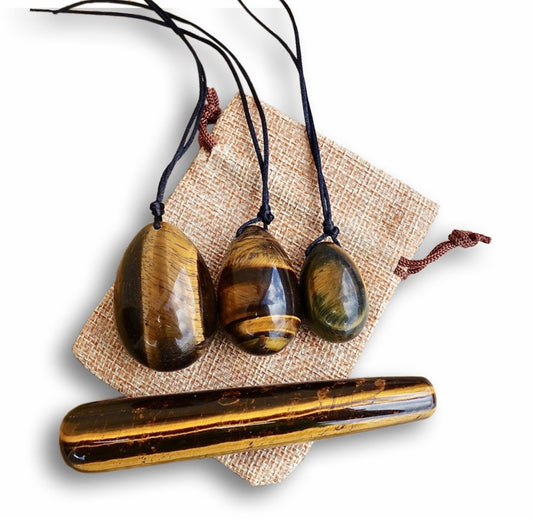 Juego de huevos Tiger Eye Yoni y varita de masaje