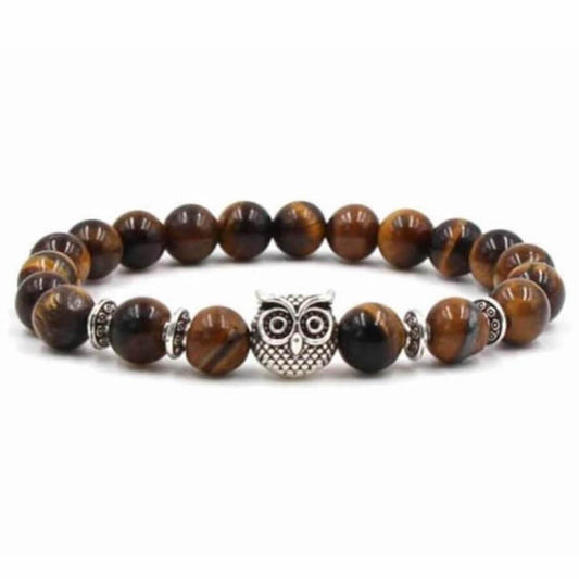 Pulsera de Búho Hecha a Mano con Piedra de Ojo de Tigre Amarillo