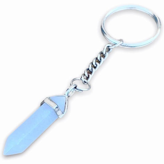 Llavero de doble punta hecho a mano con piedra de jade blanco