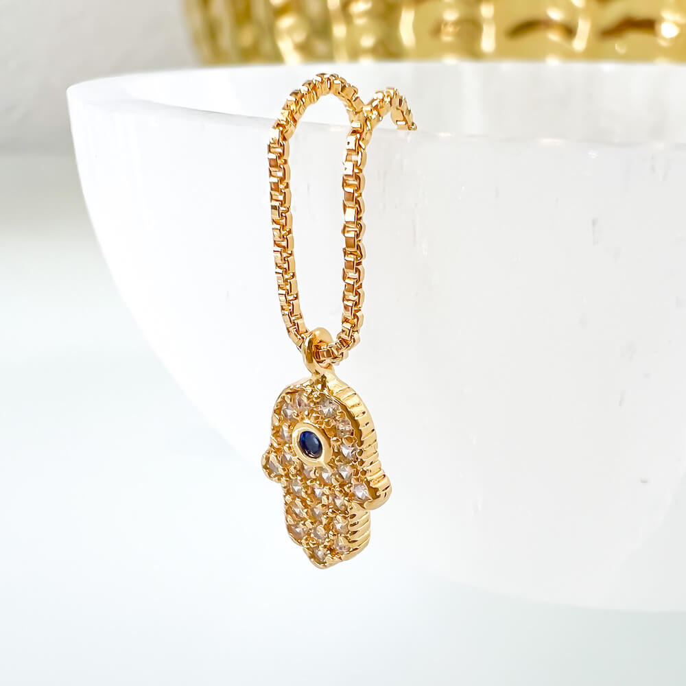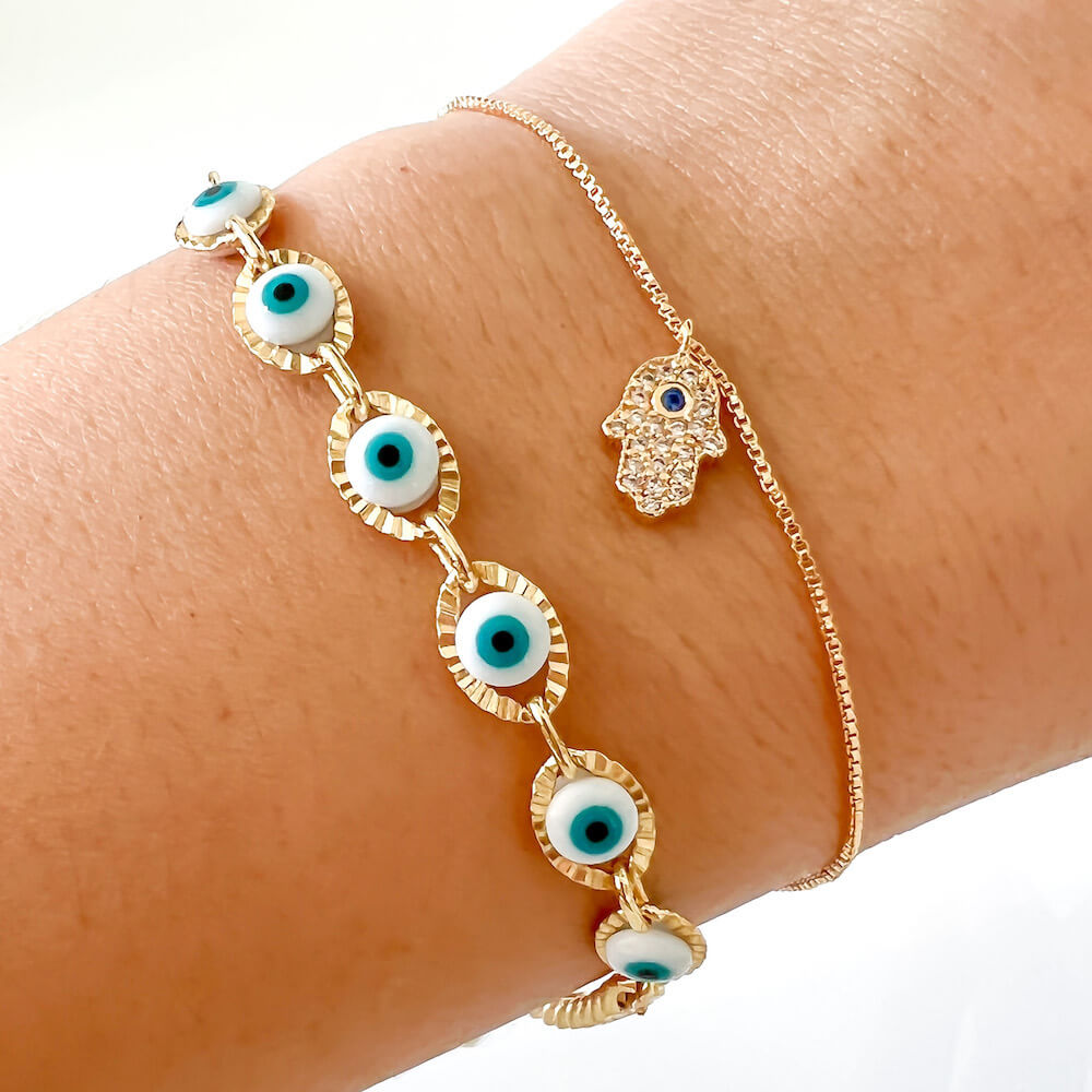 Pulsera de protección contra el mal de ojo azul claro llena de oro de 18 quilates