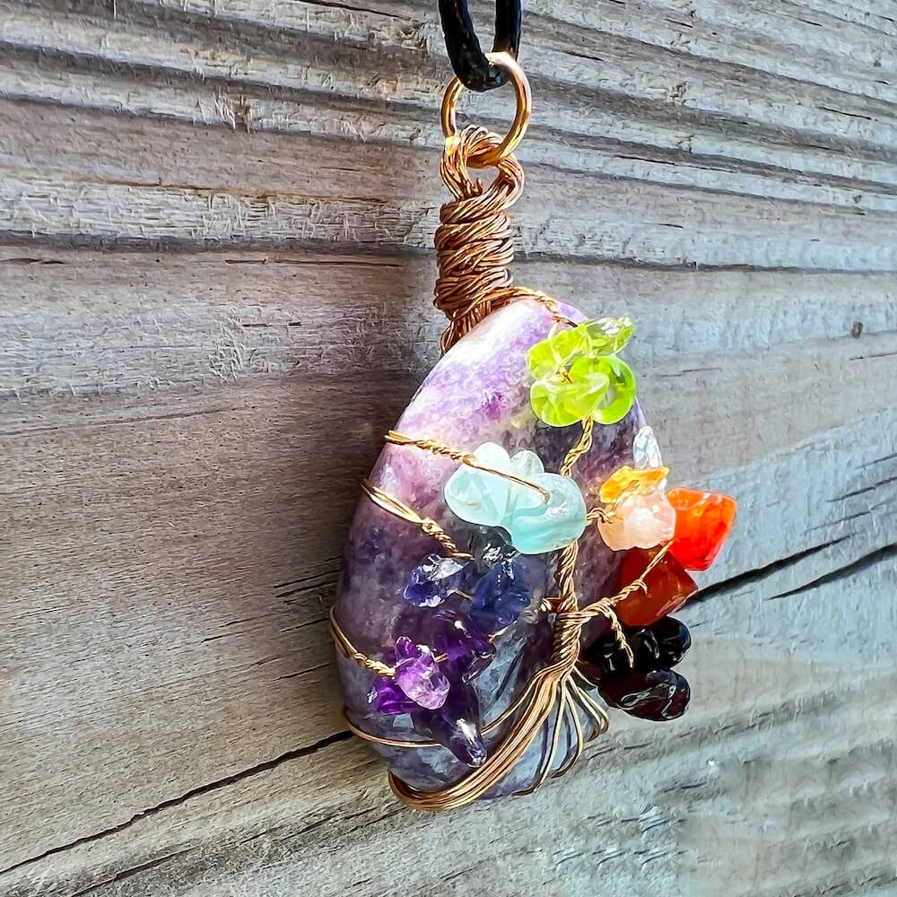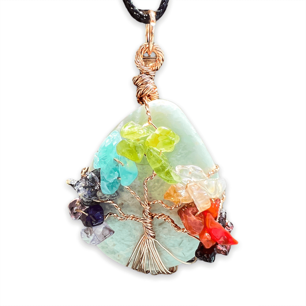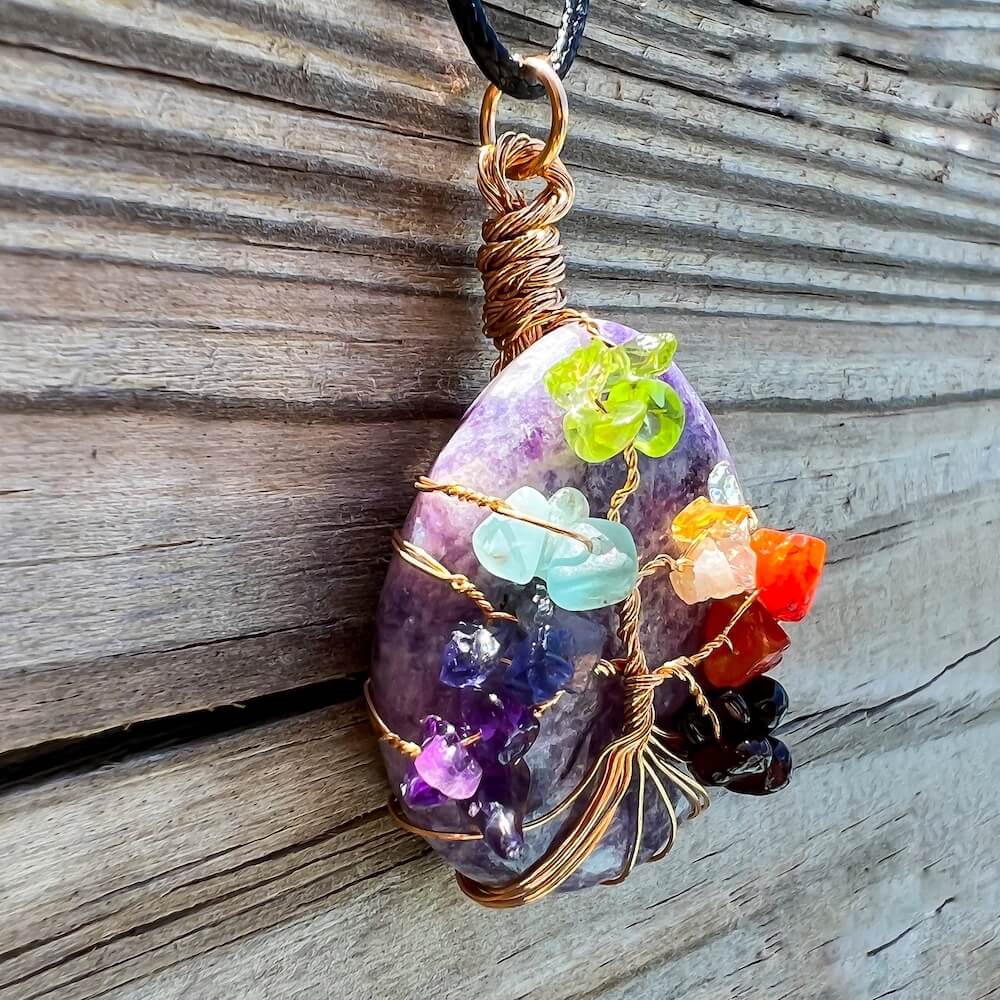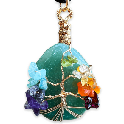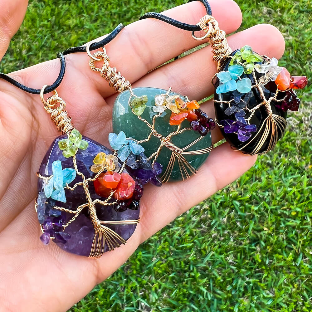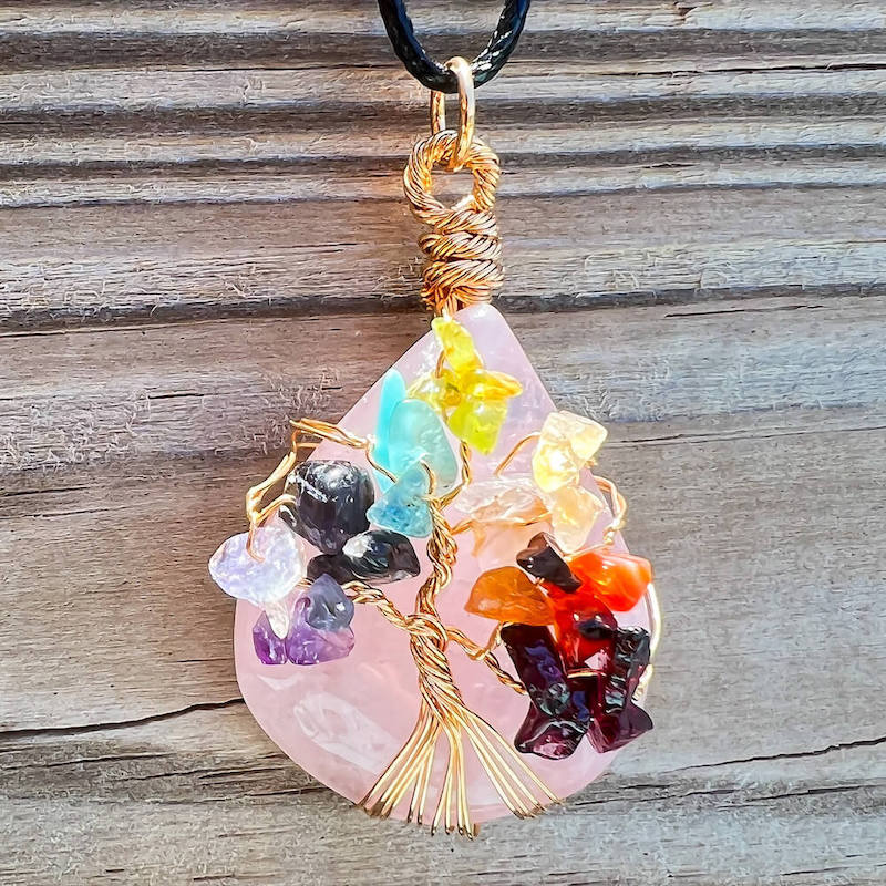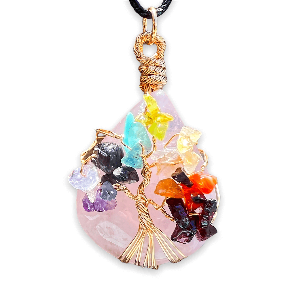 Collar con gota de árbol de la vida de 7 chakras y amatista