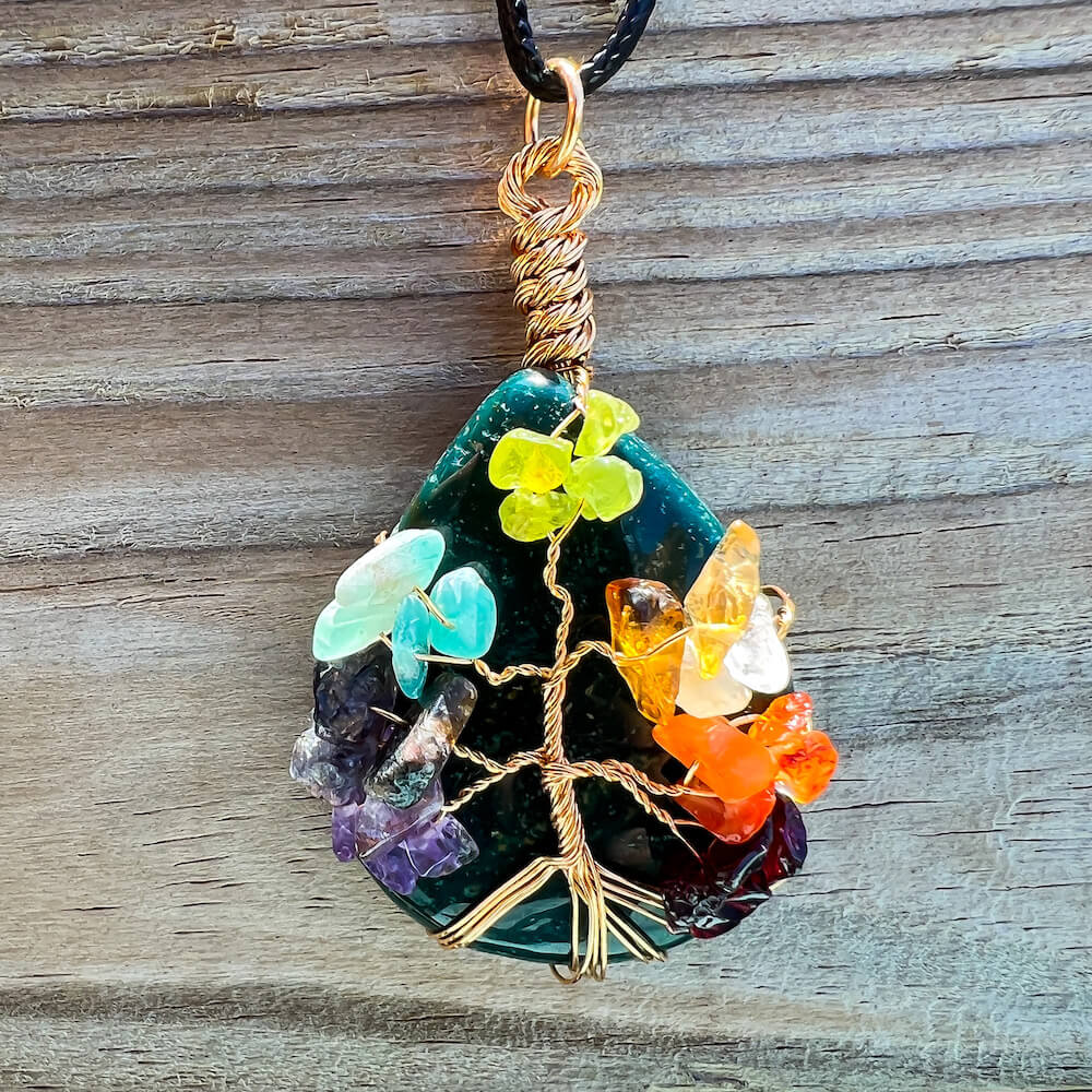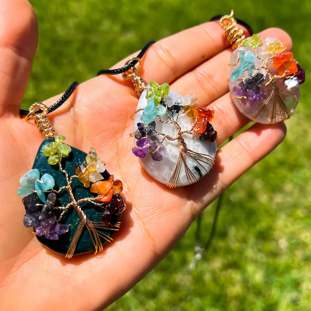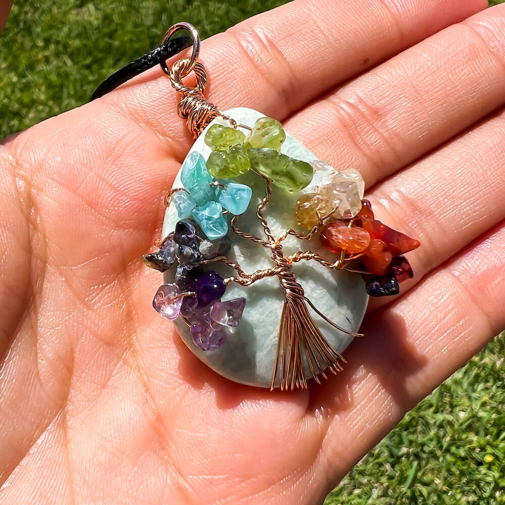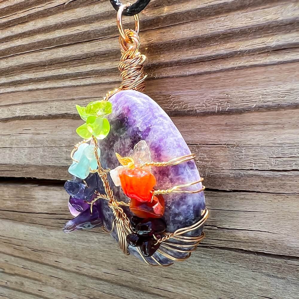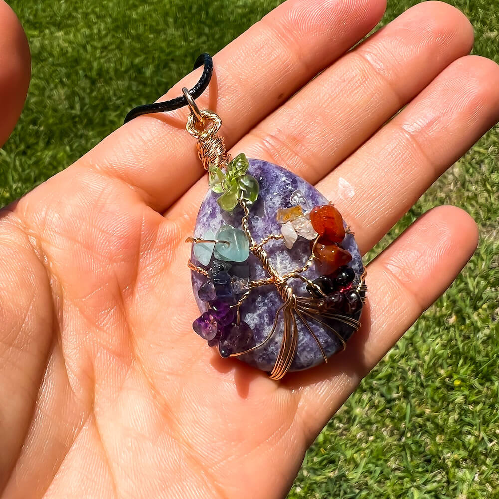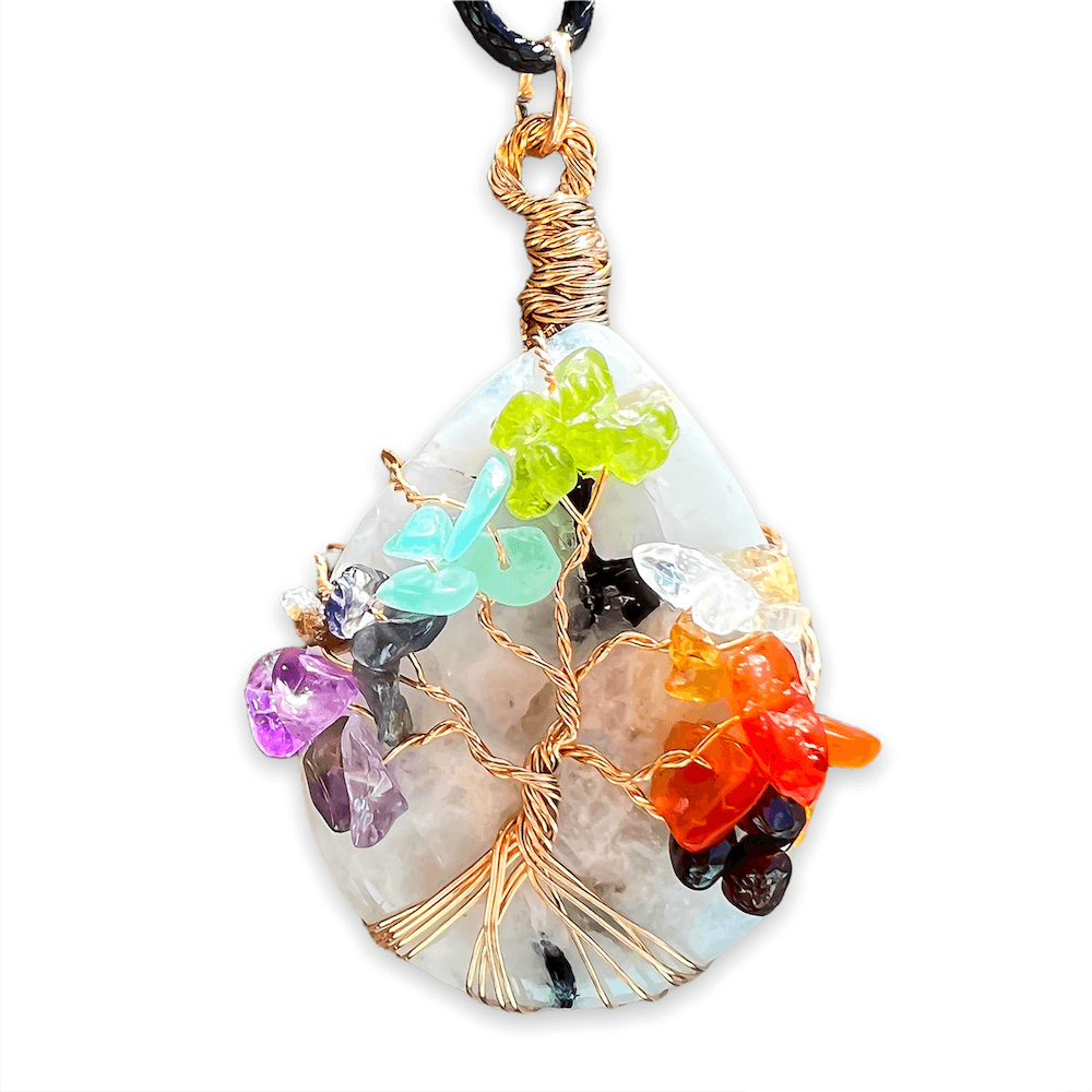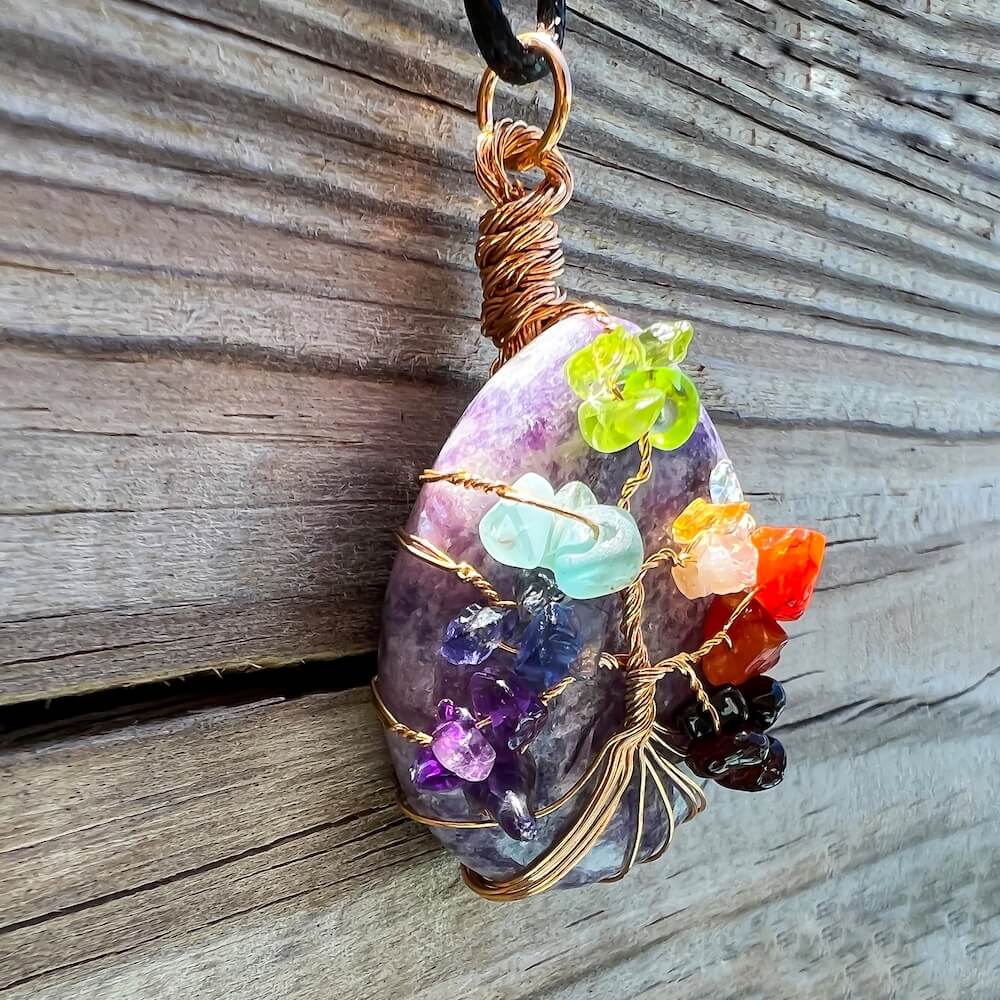 Collar con gota de árbol de la vida de 7 chakras y amatista