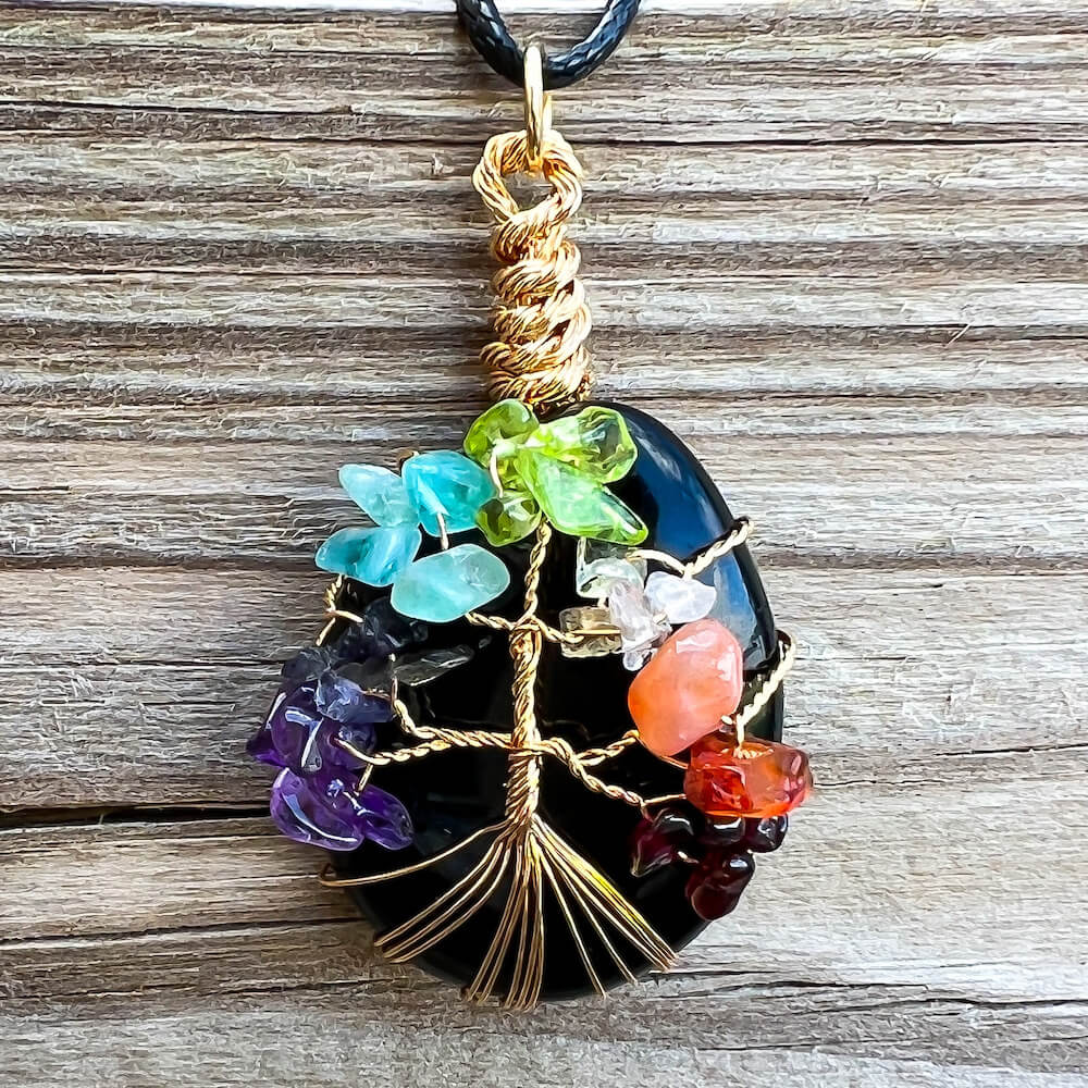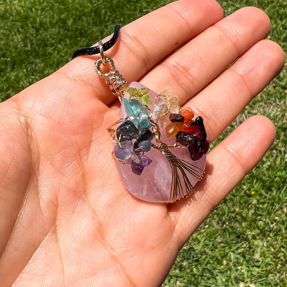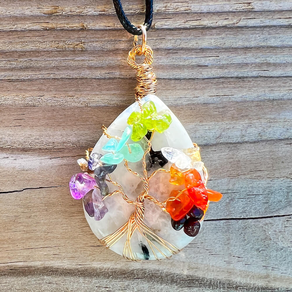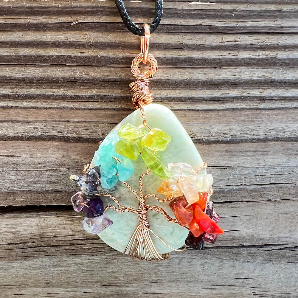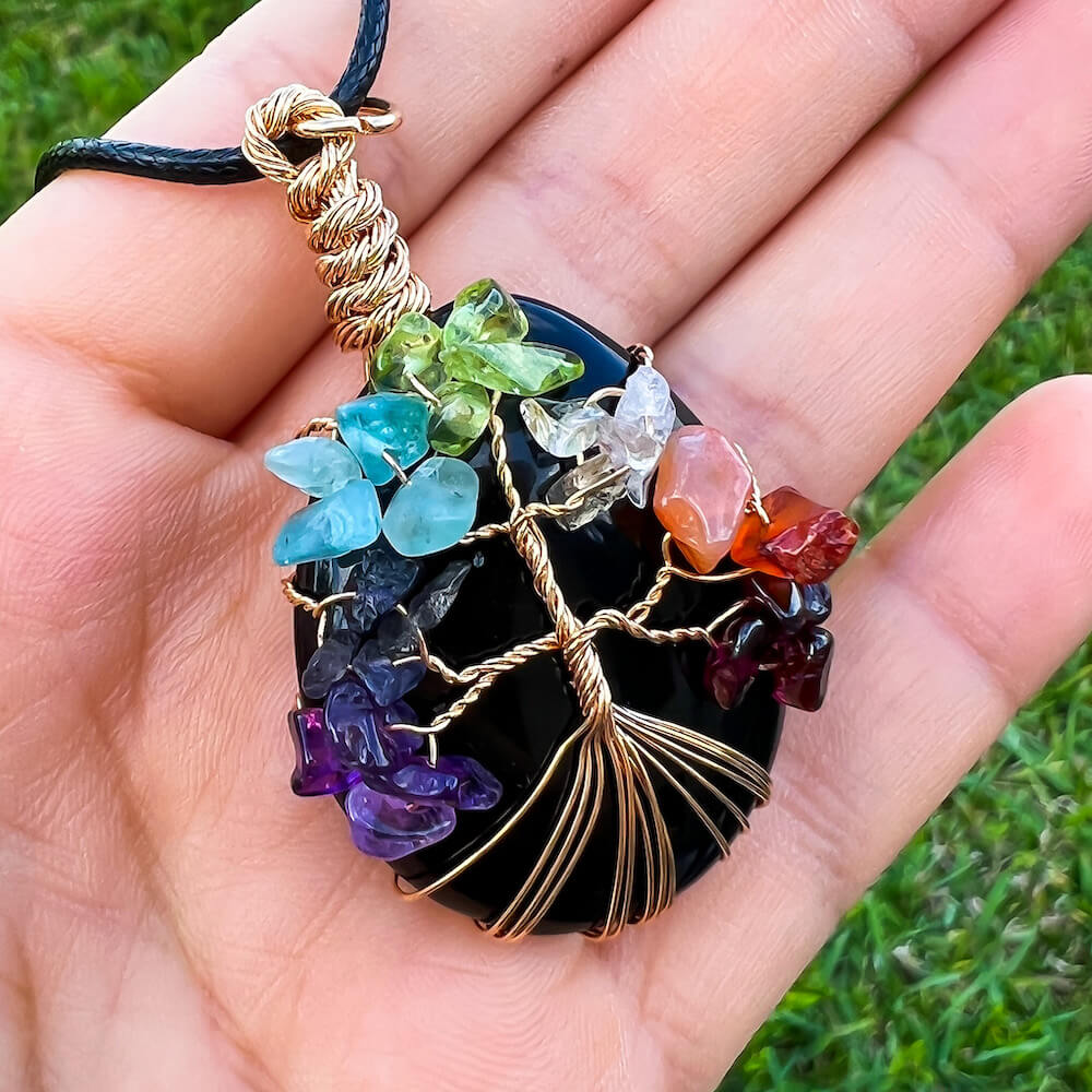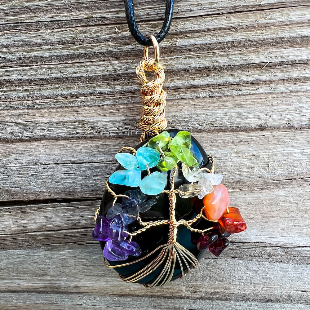 Collar con gota de árbol de la vida de 7 chakras y amatista