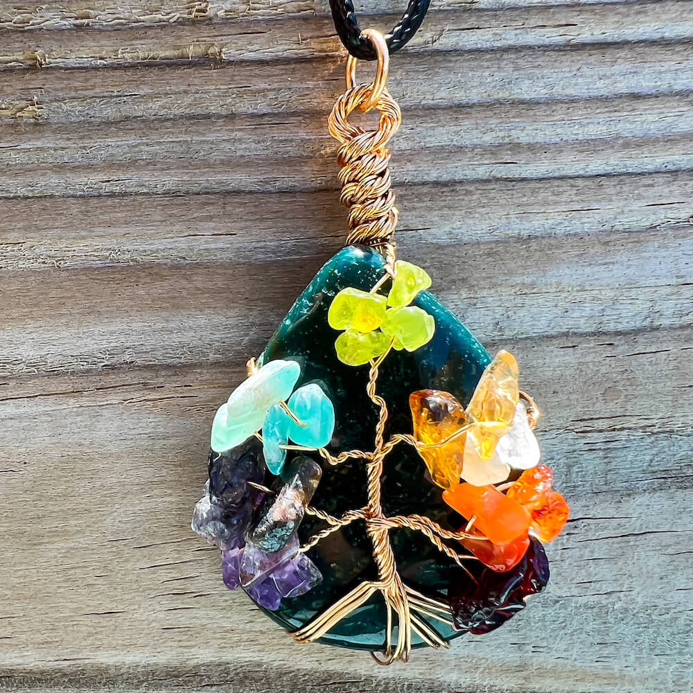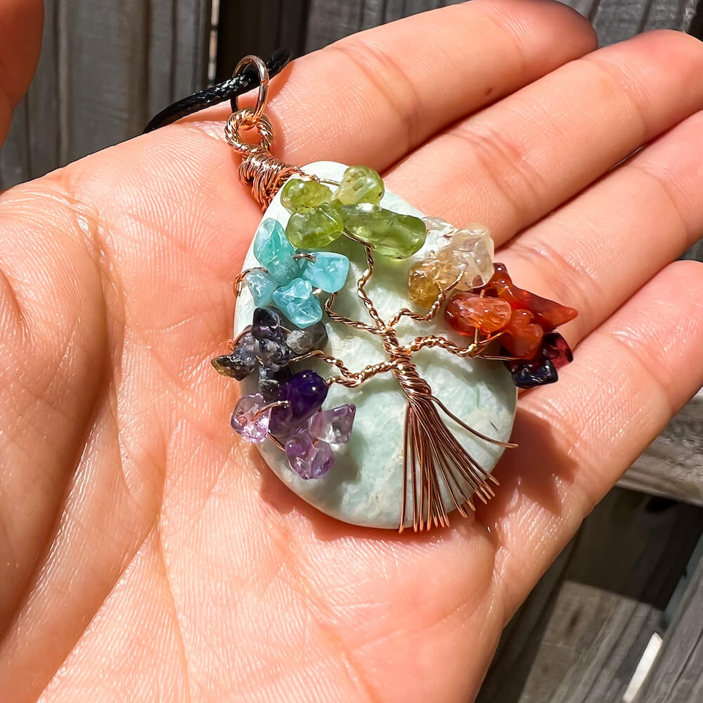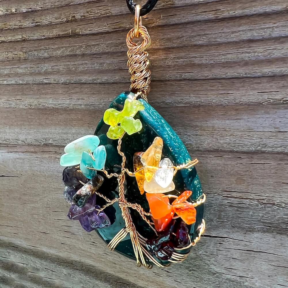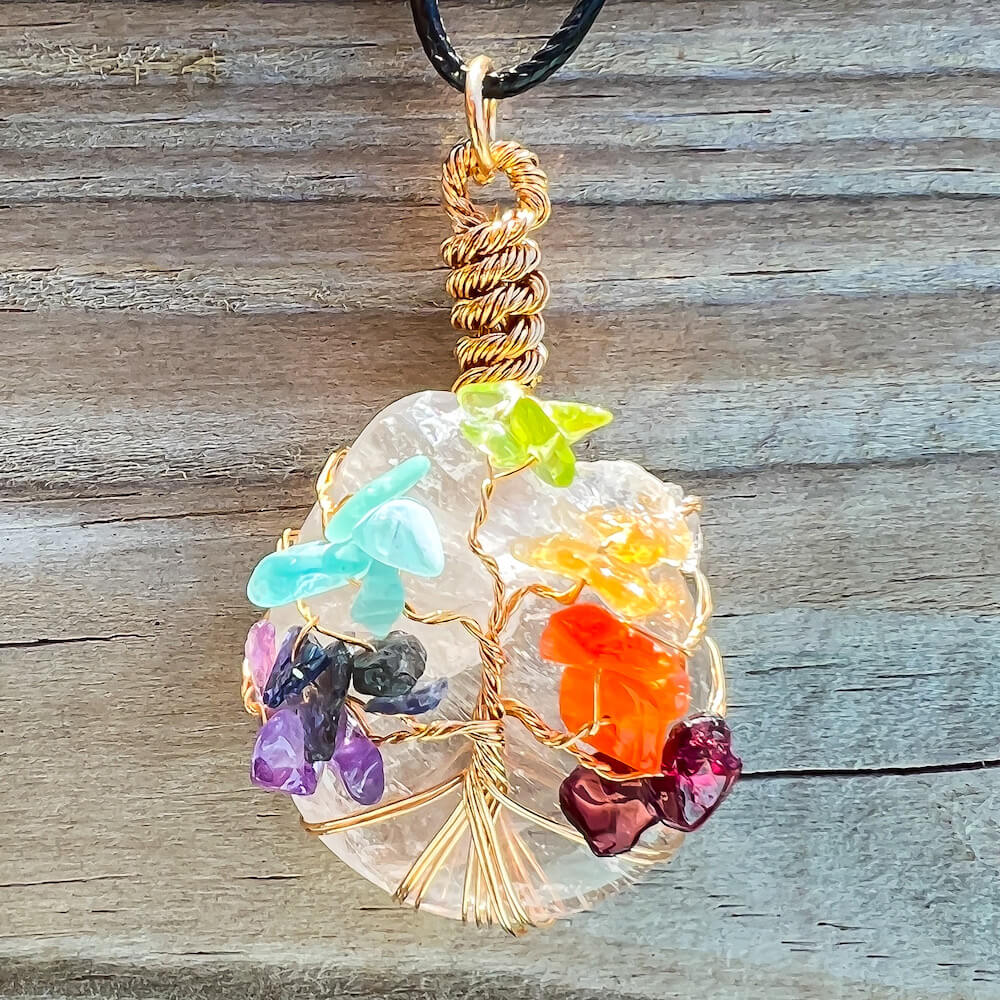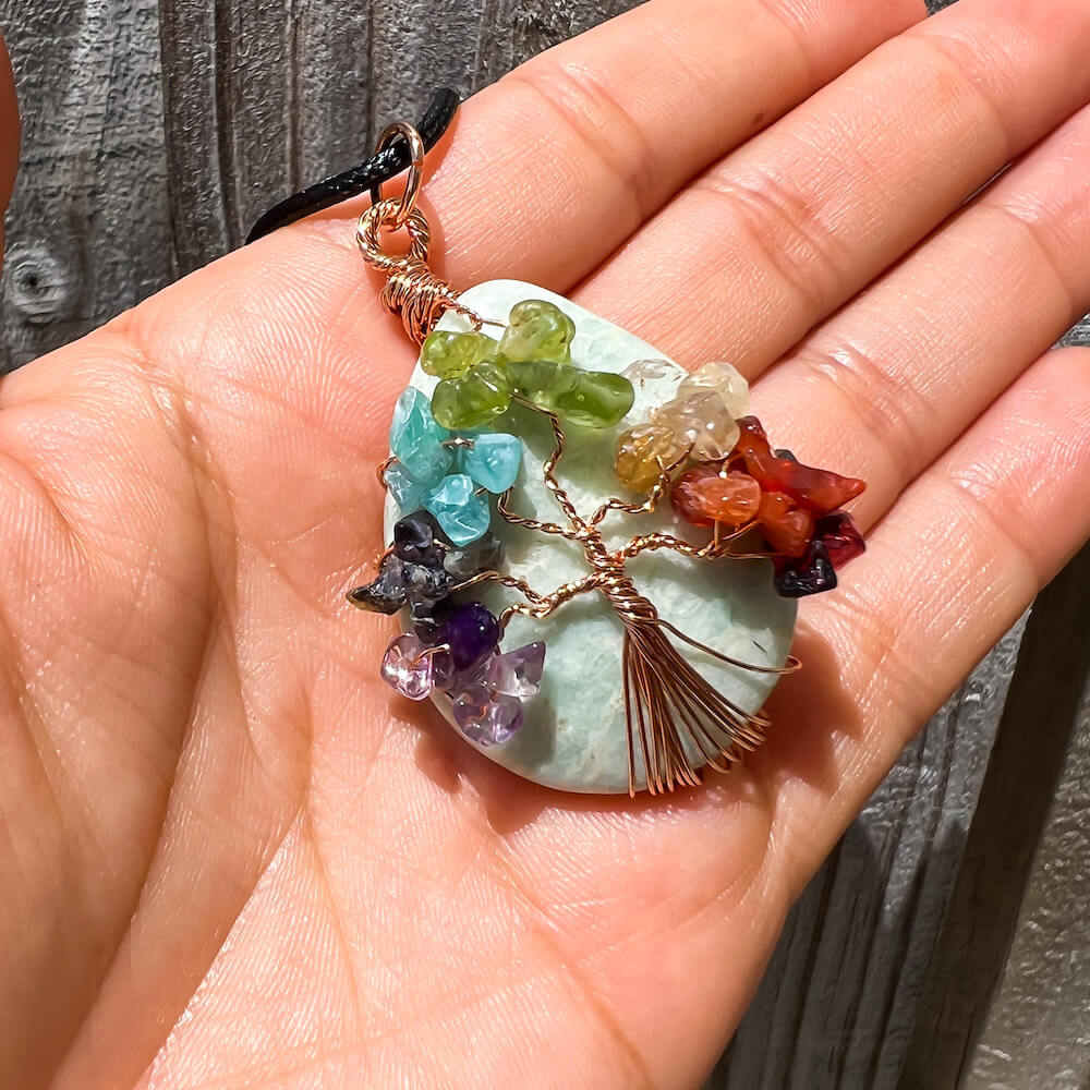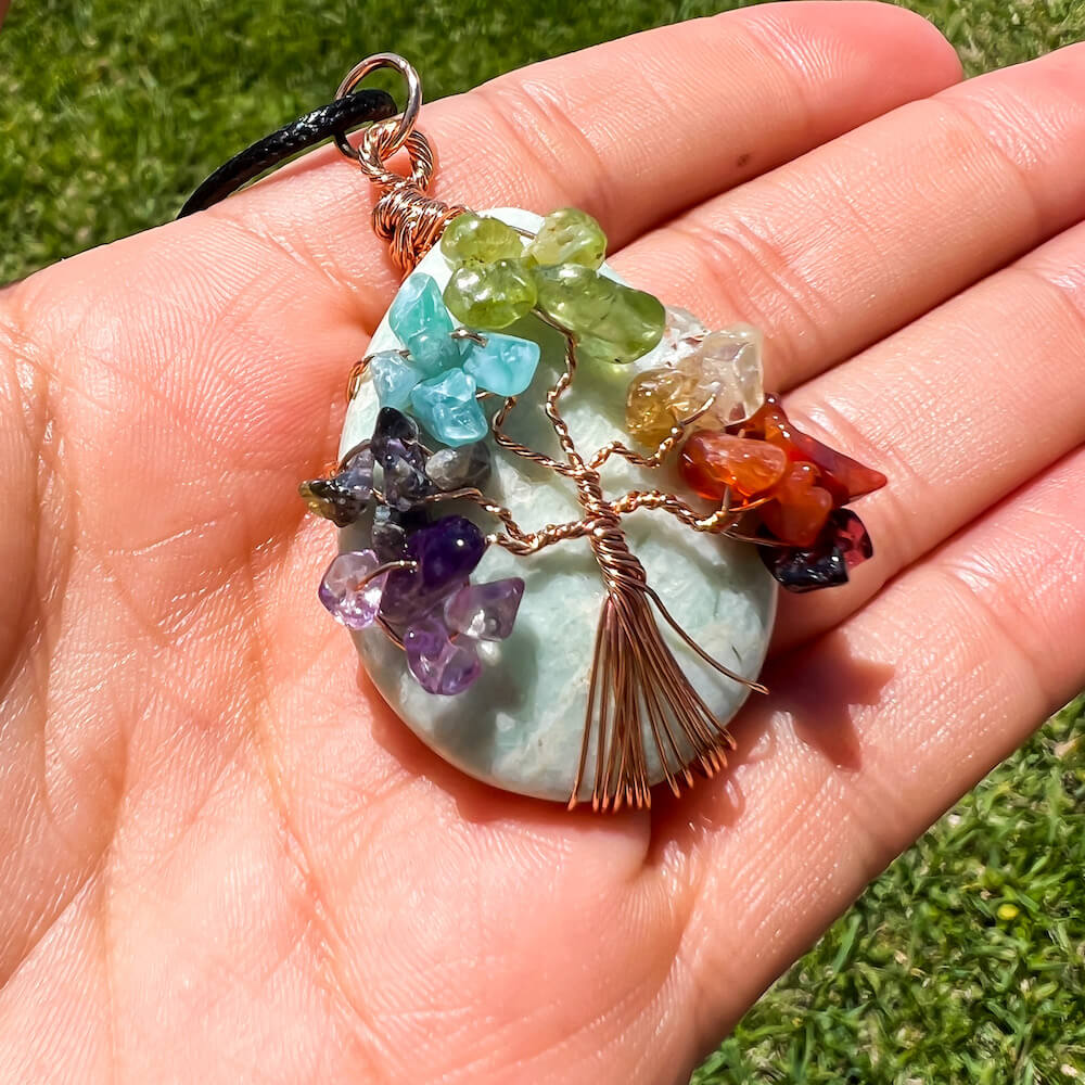 Collar con gota de árbol de la vida de 7 chakras y amatista
