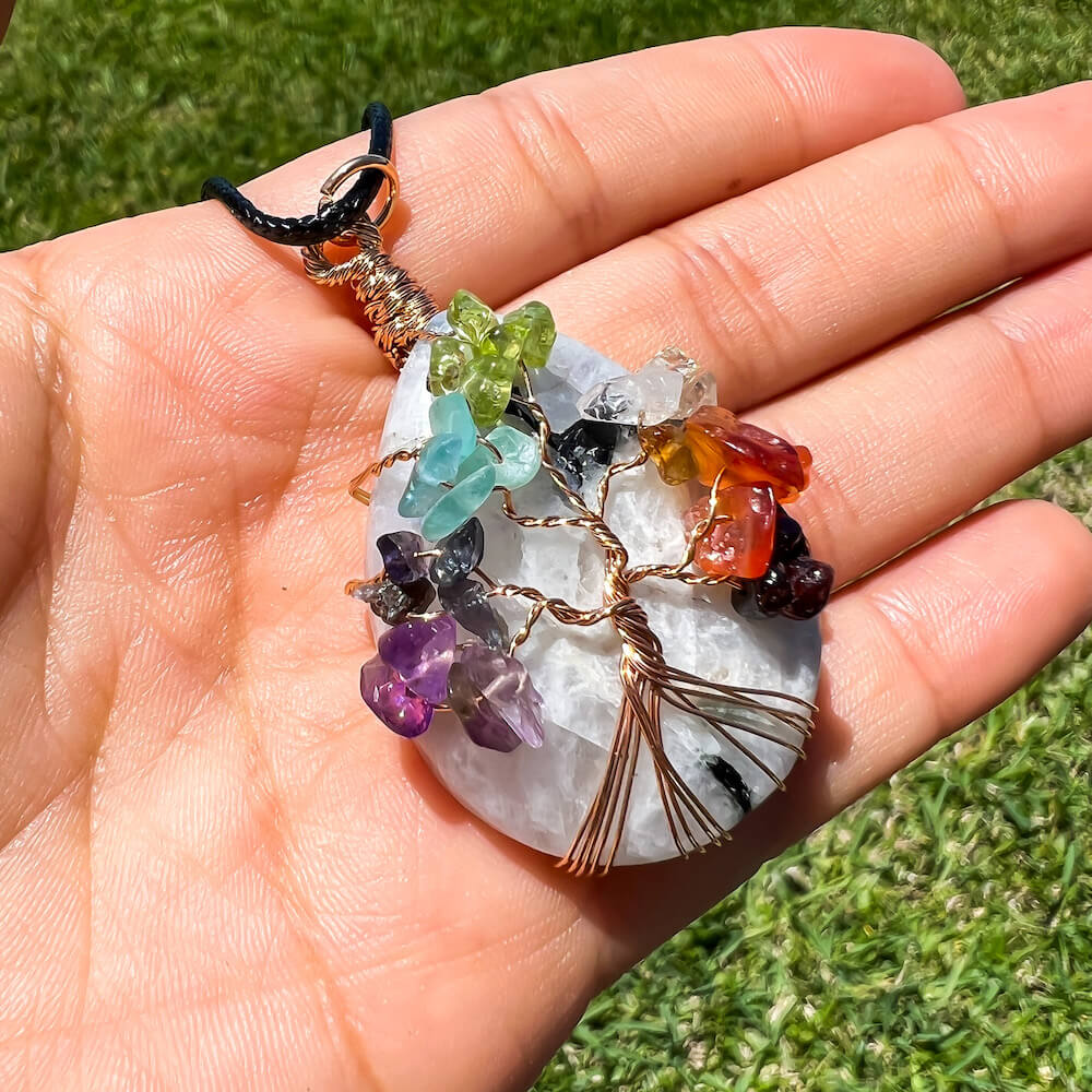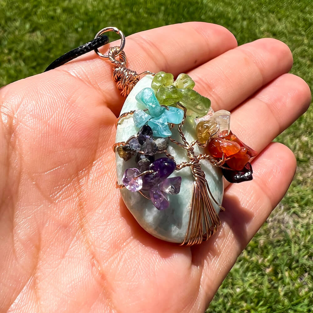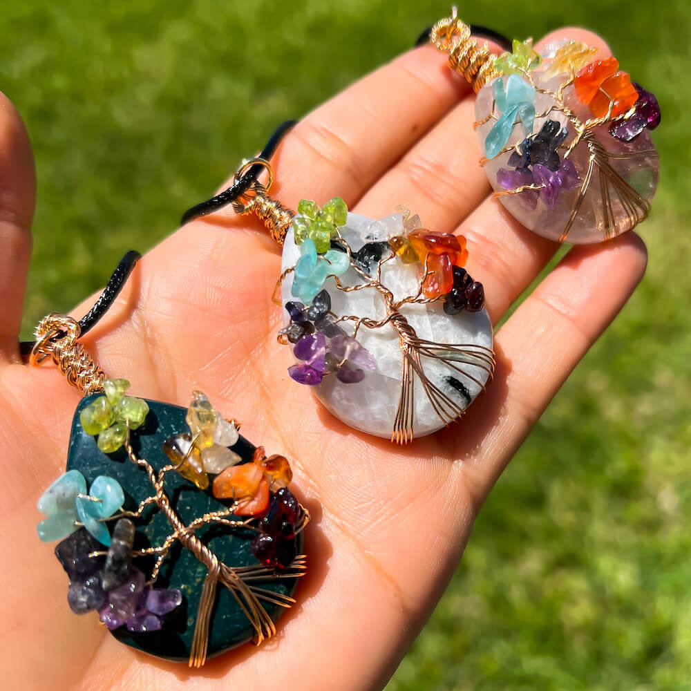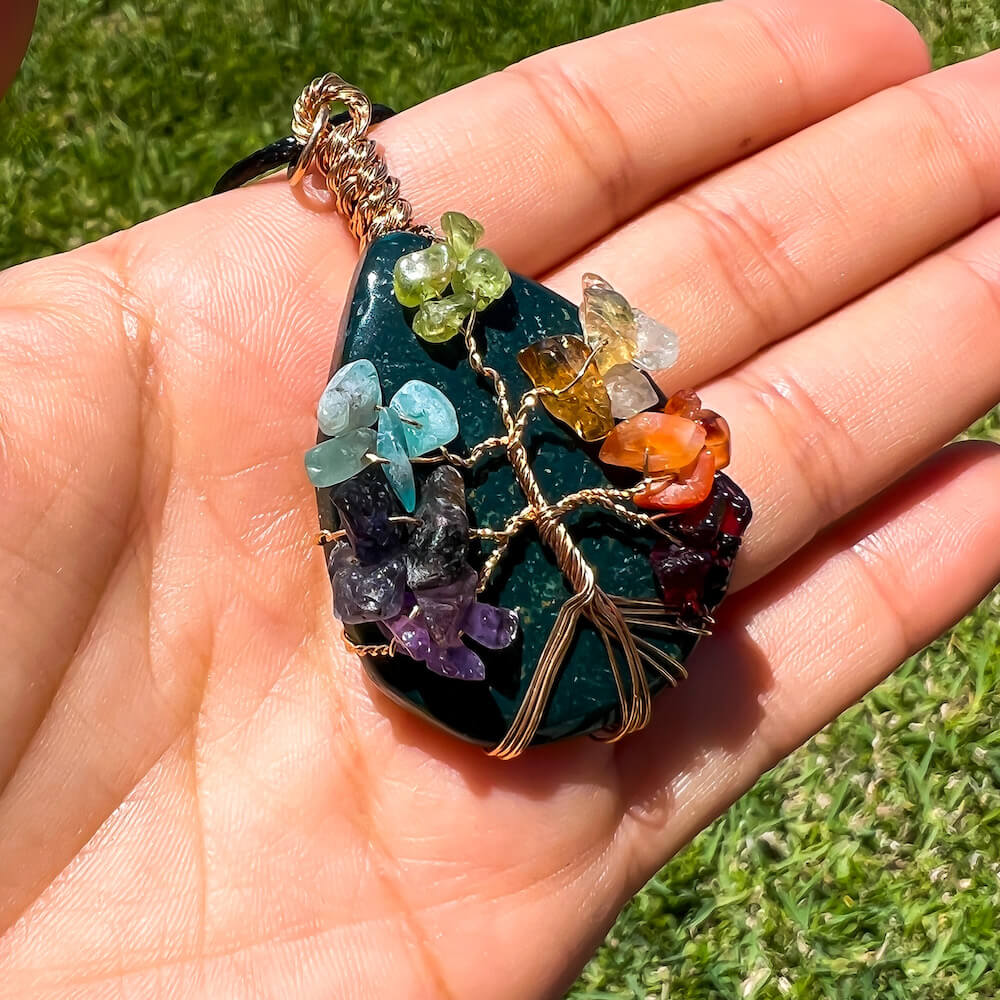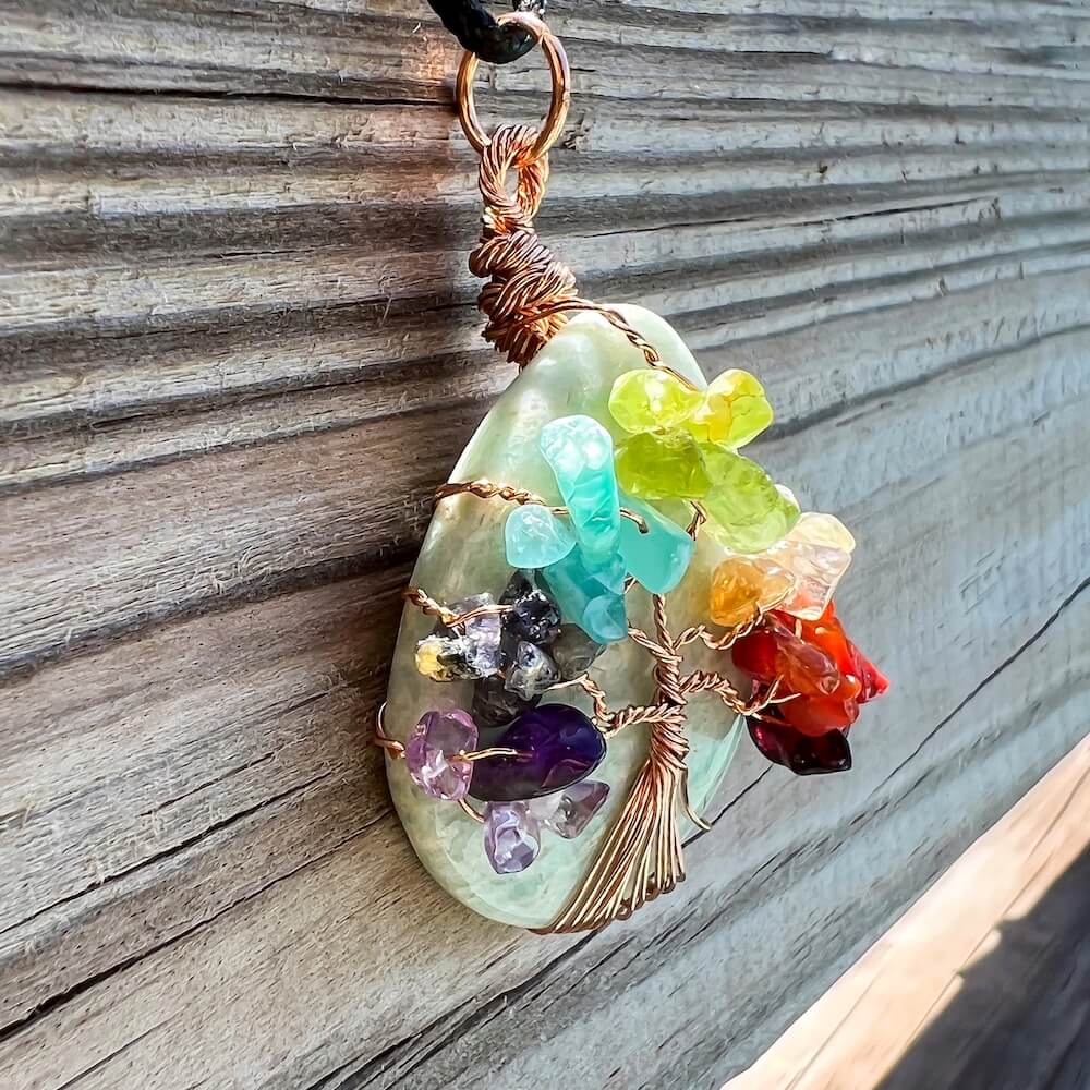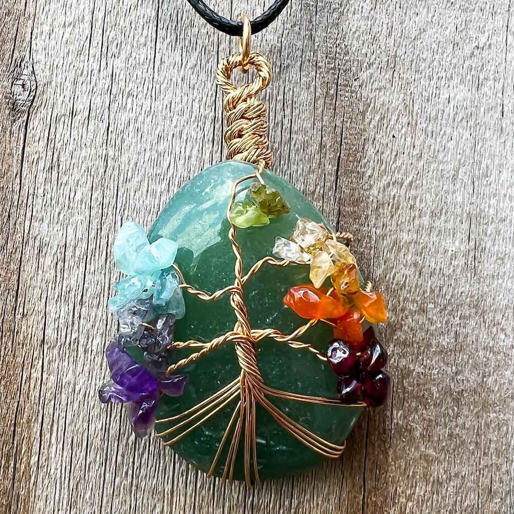 Collar con gota de árbol de la vida de 7 chakras y amatista
