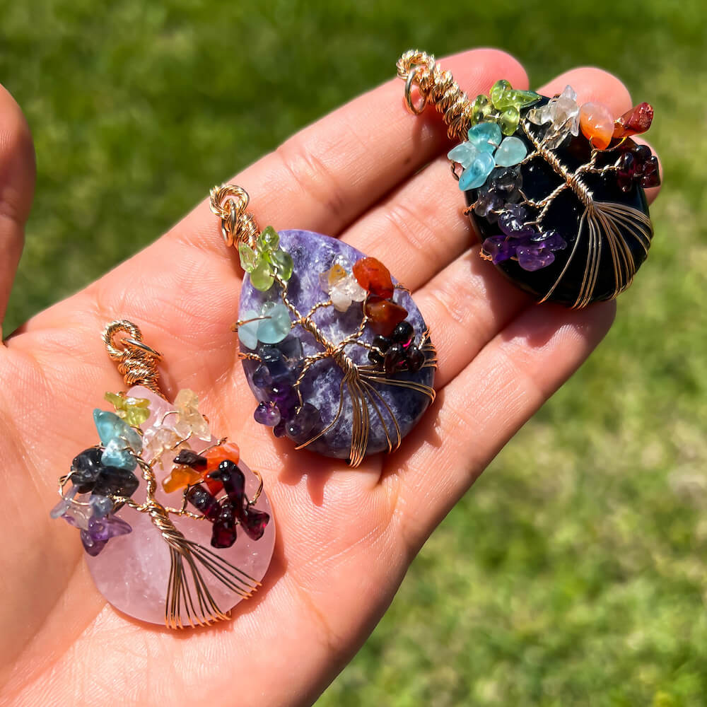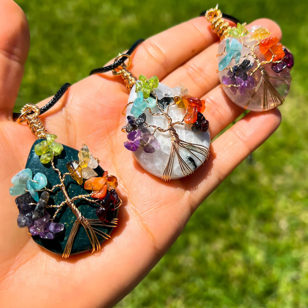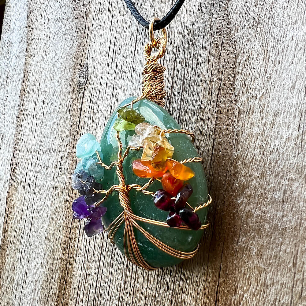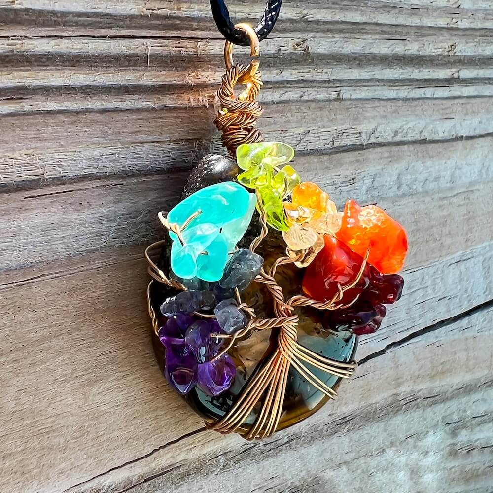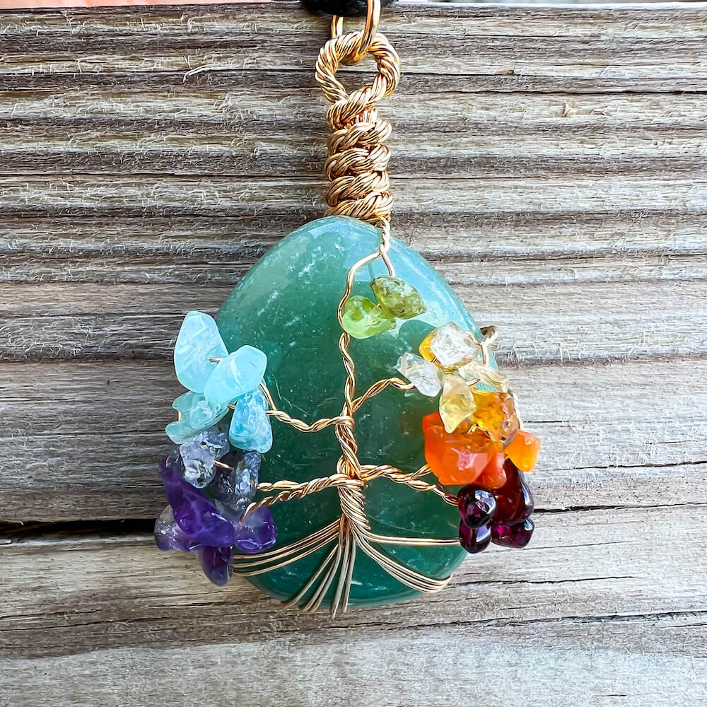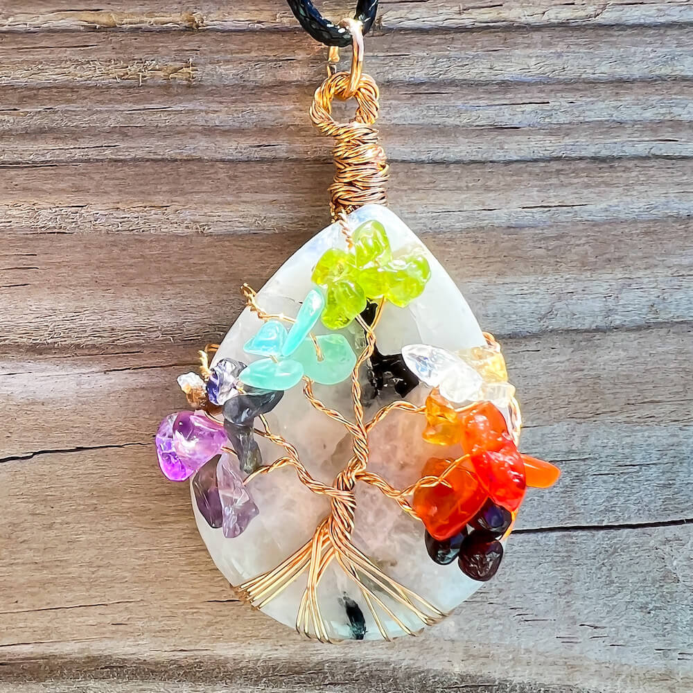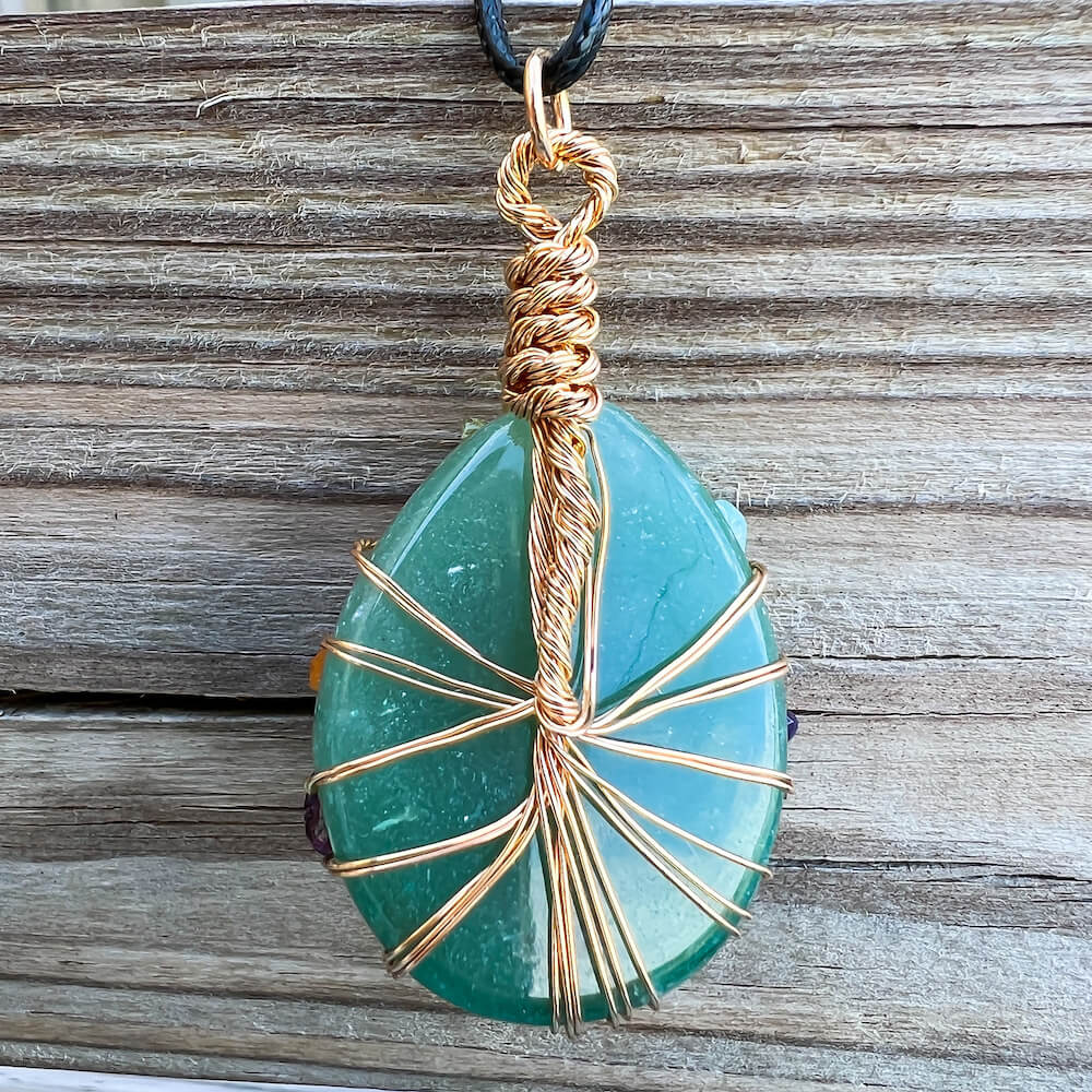 Collar con gota de árbol de la vida de 7 chakras y amatista